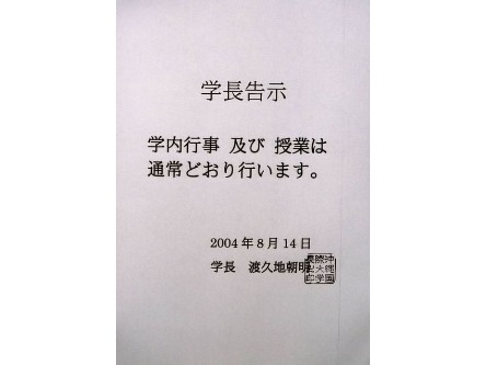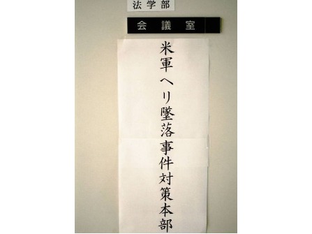 ![]() 早急に対策本部を設置した | ![]() 対策本部会議開催 | ![]() 宜野湾市長との共同声明 | ![]() 安全を確認した上で学長告示を掲示 |