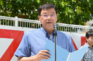第一部のポケットパーク(ヘリ墜落現場モニュメント)で開催された集いでは、まず冒頭に8月8日に急逝された翁長雄志沖縄県知事のご冥福をお祈りし、黙祷を捧げました。