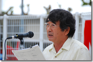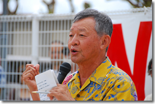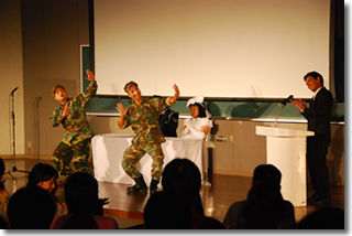 第二部では宜野湾市基地政策部長 山内繁雄氏による「普天間基地」の講和が行われた後、演芸集団FECの皆さんによる特別公演「お笑い米軍基地」が行われ、約550名の観衆を魅了しました。