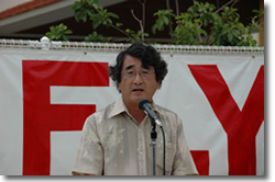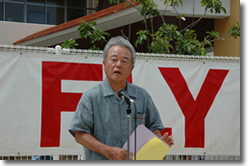 8月13日、本学米軍ヘリコプター墜落事件現場において「普天間基地を使用する航空機の飛行中止を