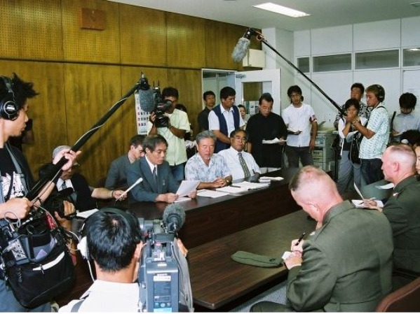 ![]() 防衛施設局より石井道夫次長が学長と面会 | ![]() 事故後3日目にして…米軍が謝罪のため来学 | ![]() 学長に初めて謝罪した在沖縄米海兵隊のフロック准将 | ![]() 墜落原因を早急に究明し飛行停止、基地撤去を求める |