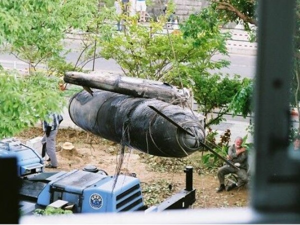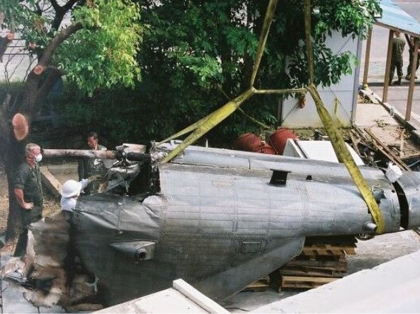 ![]() 搬出:CH-53ローター部分 | ![]() CH-53クレーン車で搬出 | ![]() 搬出:CH-53コクピット部分 | ![]() 搬出:CH-53車輪部分 |
