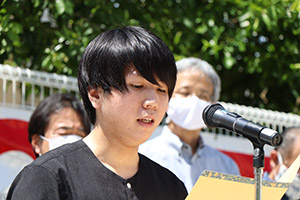 第一部のポケットパーク(ヘリ墜落現場モニュメント)で開催された集いでは、前津榮健理事長・学長による、普天間基地の閉鎖・撤去を求める旨の声明が発表されました。