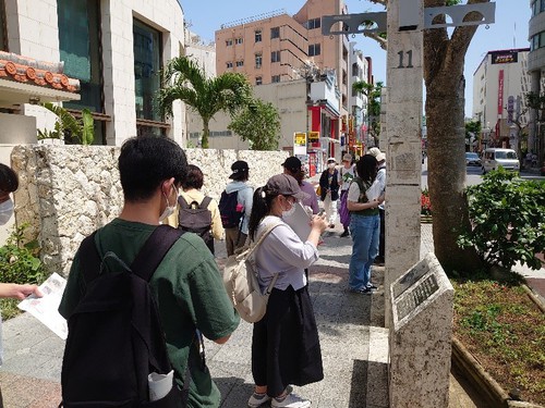 コースはゆいレール旭橋駅→軽便鉄道転車台あと→仲島の大石→美栄橋駅→長虹堤跡→