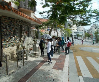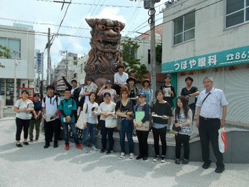 那覇市壺屋のやちむん通りにて やちむん・うふシーサー前にて集合写真