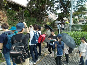 2018年5月20日(日)、13時~16時の日程で博物館実習Ⅰ(地域調査実習)が開催された。参加者は23名であった。コースは美栄橋駅→長虹堤跡→沖映跡→公設市場と水上マーケット→開南→農連市場→壺屋やちむん通り→壺屋焼物博物館。参加者はそれぞれの見学ポイントで写真撮影や紹介内容のメモなどをおこなった。26日(土)には、パソコン室にてGISソフト「地図太郎プラス」を使って、地図上に、それぞれのポイント地点の写真、紹介文、URLなどを入力し、エコミュージアム(地域丸ごと博物館)案内図を完成させた。この案内図はそれぞれのポイント地点をクリックすると、そのポイントでの写真、紹介文、さらには関係するホームページにつながる仕掛けとなっている。