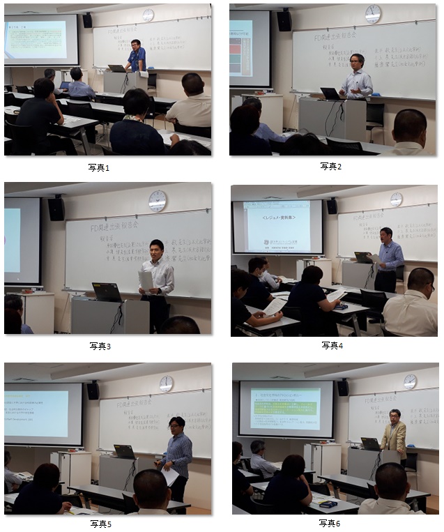 ICTを利用したアクティブラーニングや教材に関わる著作権問題、学生のタイプ別学習スタイル、FD活動に関する他大学の事例紹介、高大接続改革に関連する取り組み等、多岐に渡る報告がなされました。