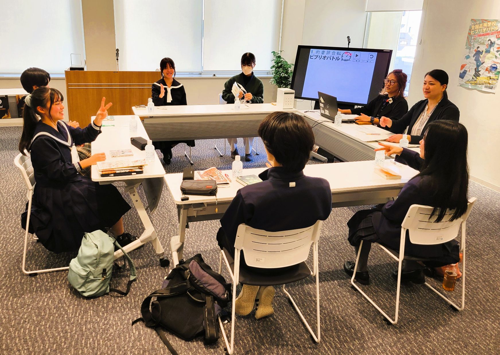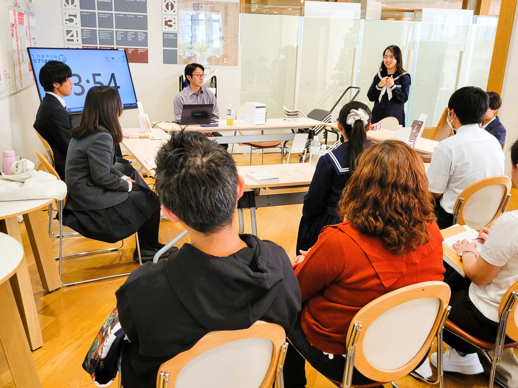 学生委員として集まってくれた図書館情報学ゼミの4年生は、国立大学附属図書館司書、沖縄県学校事務など、それぞれ図書館や学校教育に関わる進路に進むことが決まっており、高校生との交流を通して、読書活動の大切さやイベントの運営方法を裏方として学ぶことができ、とても貴重な学びの機会になりました。