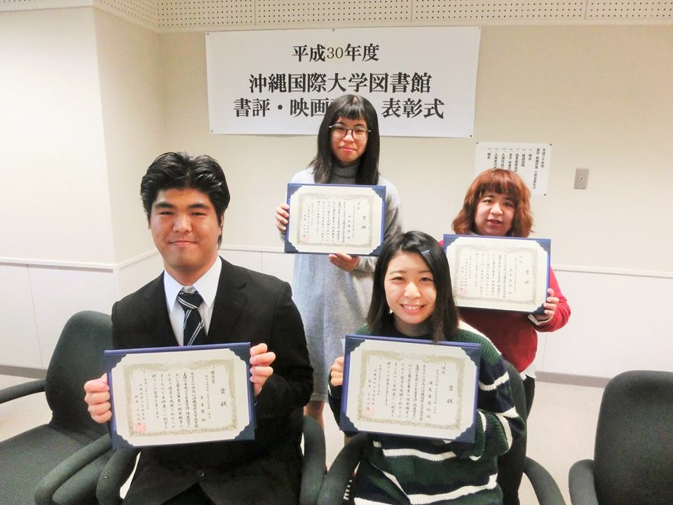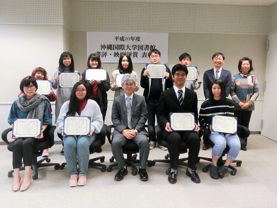 2018年12月14日、沖縄国際大学図書館が主催する「書評・映画評コンテスト」の表彰式が開催され、日本文化学科の1年生、3年生、4年生が優秀賞・佳作受賞者として出席しました。