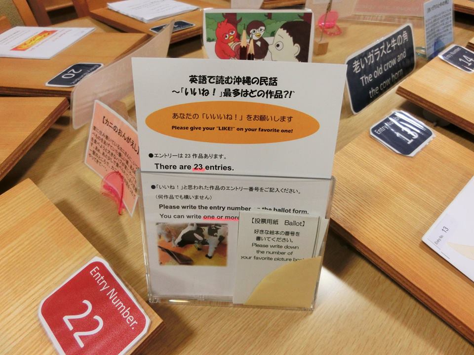 日本・沖縄の文化を言語力やICTを活用して、県外・海外に発信していく「多文化間コミュニケーションコース」の取り組みとして、JICA沖縄国際センター図書資料室のスタッフの皆さんのご協力を得て取り組んできた、沖縄の民話・昔話絵本コンテスト。