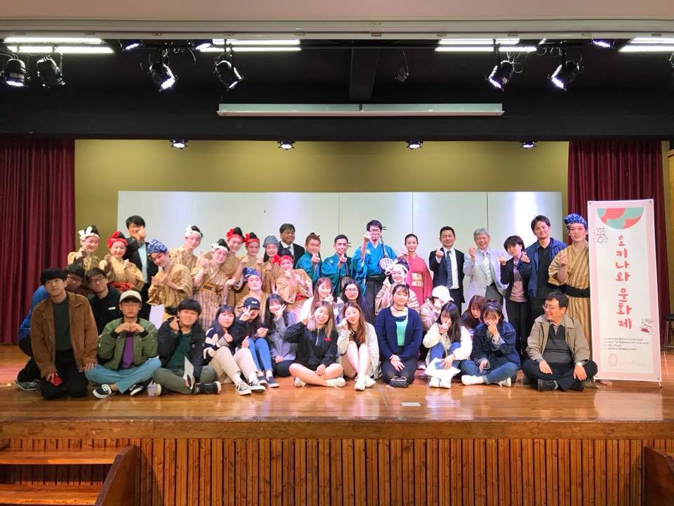 日本文化学科の学生が多く所属する「琉球芸能文学研究会」は、韓国全羅北道益山市にある円光大学において「琉球舞踊鑑賞会」を行ってきました。