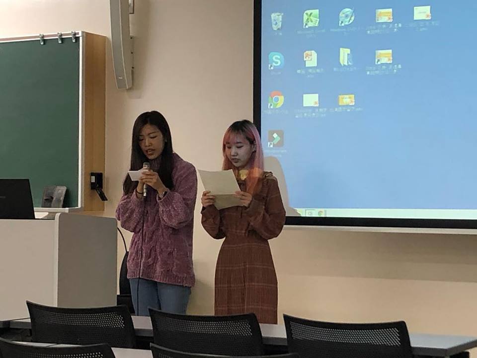 司会進行役は、日本文化学科の1年生で中国からの留学生である李さんと、マカオ大からの交換留学生のメロディーさん。