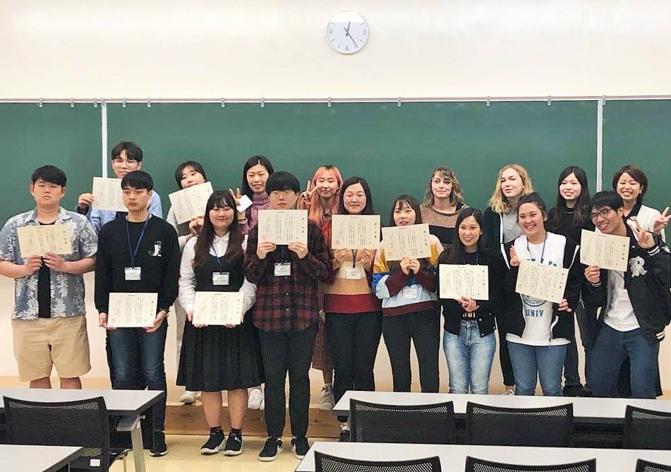 2019年2月14日、沖縄国際大学に海外の提携校から短期留学に来ていた学生のみなさんと県費留学生のみなさんによる「学習成果発表会」が行われました。