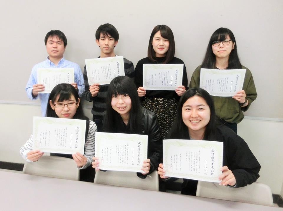 この日は、成績優秀者の表彰も行いました。この賞は4年間の成績上位者に贈られるもので、今年度は10名が受賞しました。真面目な学生が多い日本文化学科の学生さんたちですが、ふだんは自分の成績順位を知る機会はないので、「え? なんで私が?」と戸惑いつつも、4年間の頑張りが評価されたことへの喜びをかみしめている様子でした。