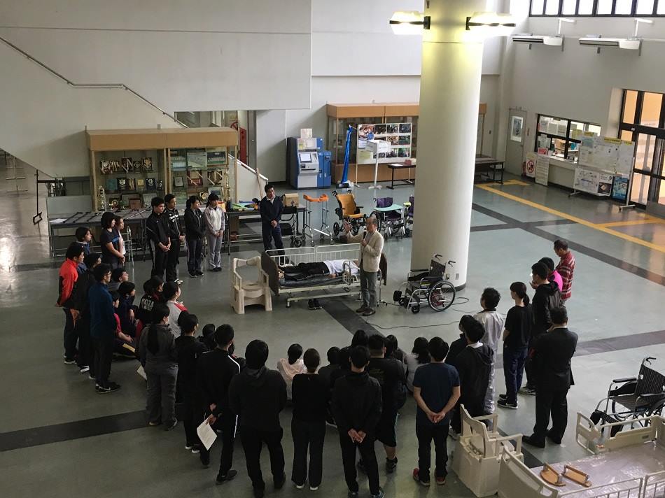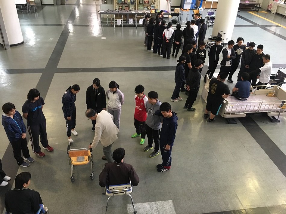 この日のオリエンテーションには、日本文化学科の学生を含む約50名の学生が参加し、午前の部では三村先生から「介護等の体験の概要と教職学生にとっての意義」というお話を聞き、午後の部では学外より4名の講師をお招きして車椅子やベッド介助等の技術講習を行いました。