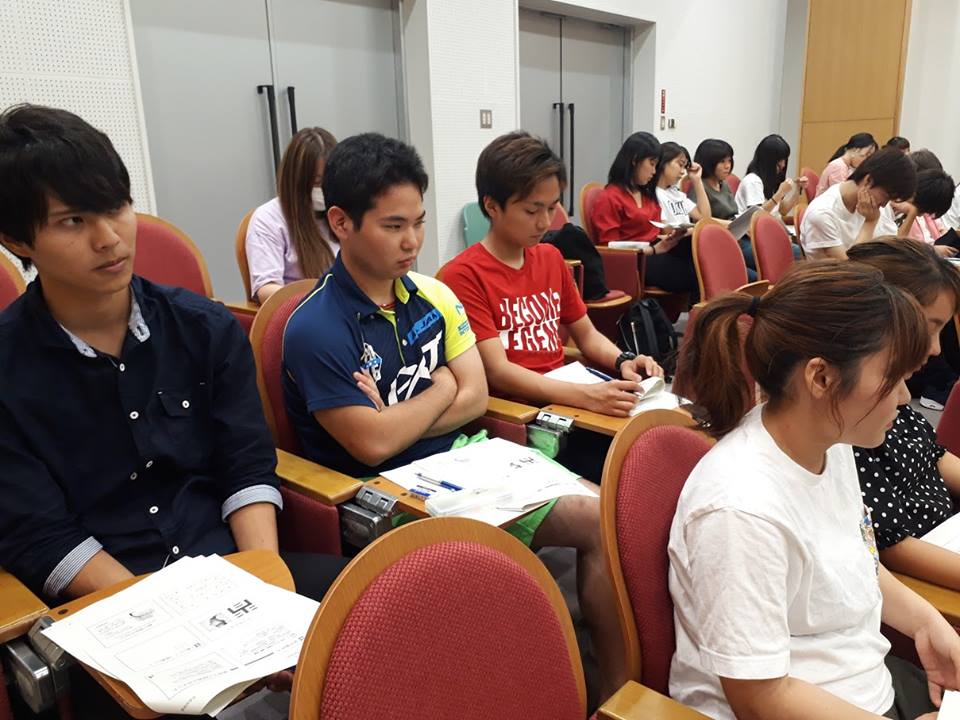6月20日の授業では、沖国大にある「キャンパス相談室」において、カウンセラー業務を行っていらっしゃる臨床心理士の稲田政久先生と比嘉紀枝先生からお話を伺いました。