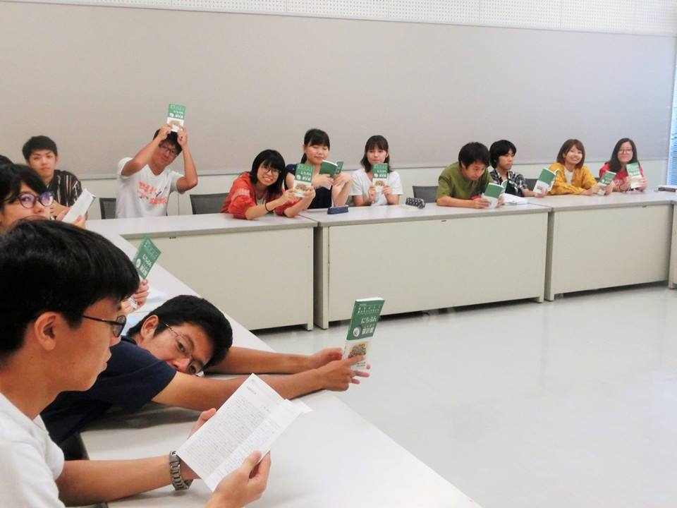 夏休みを目前に控えた本日(2018年7月18日)の授業では、1年生全員に日文のブックガイド『にちぶん羅針盤』が配られ、担当の村上陽子先生より、ガイドブックの使い方や、夏休みに是非読んでほしい先生方の推薦書の紹介、書評の書き方についてのレクチャーがありました。