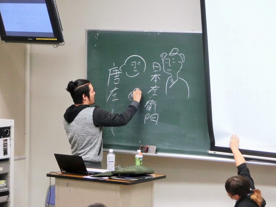日本文化学科には、2年生の必修科目として「ゼミナール入門」という科目があります。毎回、各先生が研究室での研究内容をさまざまな趣向を凝らしてプレゼンし、2年生のゼミ選択の参考にしてもらっています。