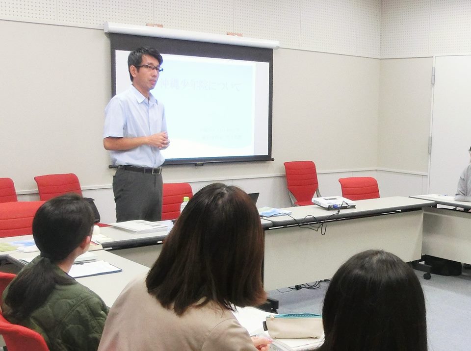 12月末には、公共図書館の「アウトリーチサービス(図書・読書を届けるサービス)の体験」をテーマとして、糸満市にある沖縄少年院の図書室見学と、ビブリオバトルのデモンストレーションを予定していて、そのための事前学習として、2018年11月30日に、沖縄少年院の法務教官の竹下先生をお招きし、矯正教育のプログラムや院内での読書活動についてのレクチャーを受けました。