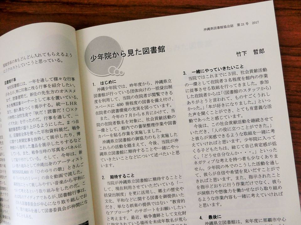 ※沖縄少年院での図書室の取り組みは、『沖縄県図書館協会誌』第21号(2017年12月刊行)にも掲載されています。