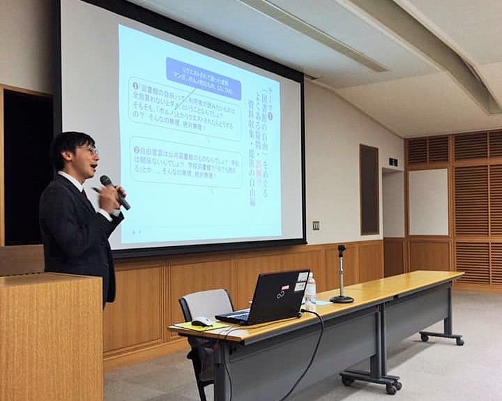 2019年3月11日、日本文化学科で図書館の授業を担当している山口先生が、日本図書館協会が主催する「図書館基礎講座in九州」に講師として参加し、山口先生が専門とする「図書館の自由」について長崎県の図書館員の皆様にお話をさせていただきました。