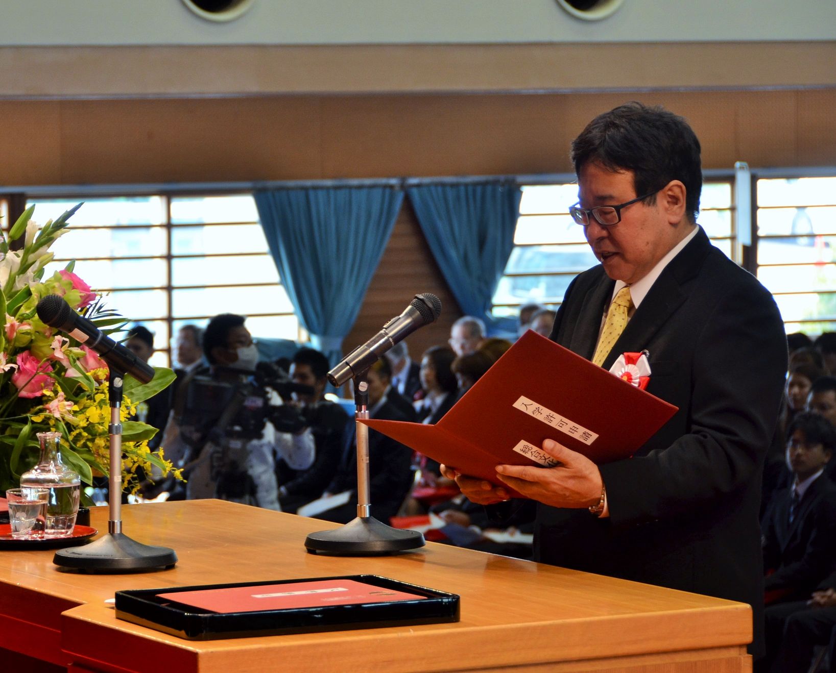 保護者オリエンテーションを担当したのは、日本文化学科教員であり、総合文化学部の学部長でもある兼本敏先生(中国語・比較文化担当)ということもあって、日本文化学科からは保護者向けのパンフレットを作成して、保護者の皆様に配布させていただきました。