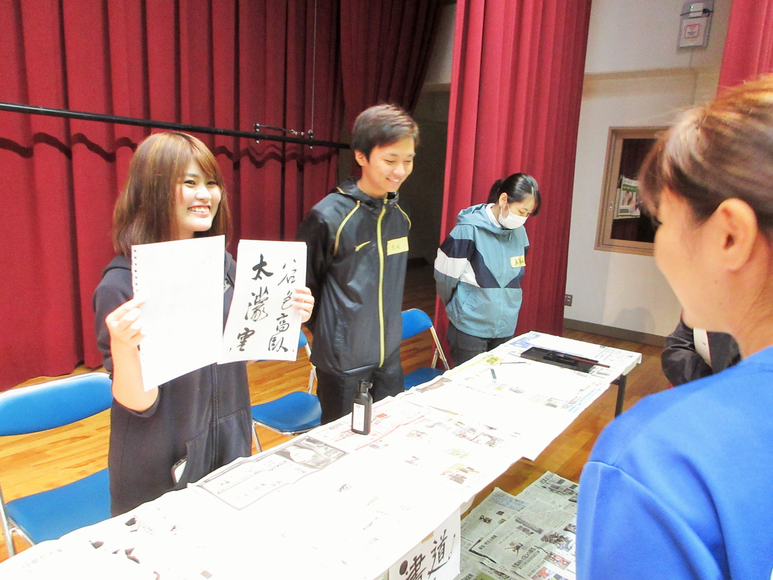 ●「書道ブース」 象形文字の原型を見せて、元の漢字を連想し、正しい筆順で美しく書くゲーム。