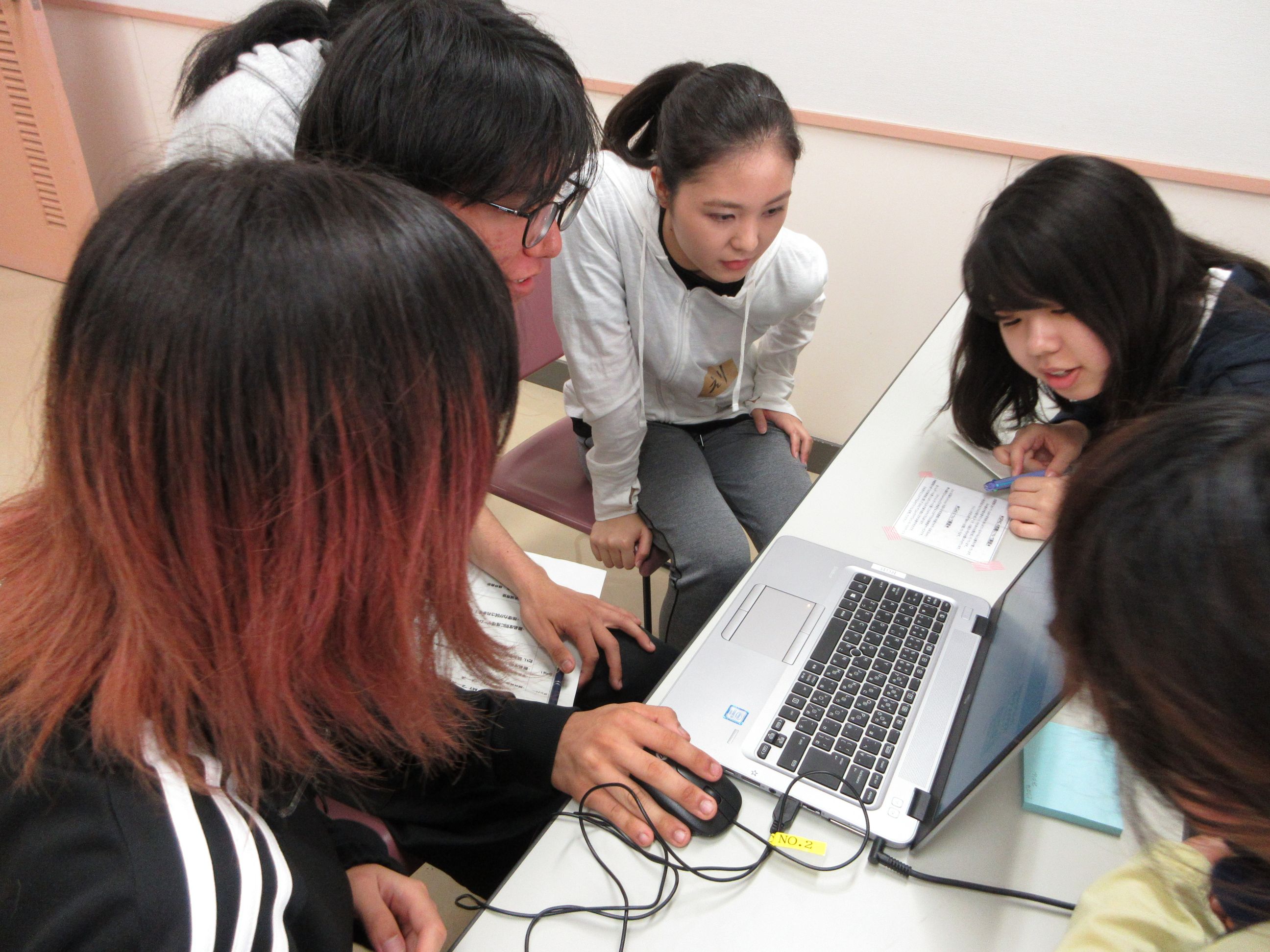 ●「図書館ブース」 学科の先生の論文をCiniiArticlesで探すゲーム、指定されたタイトルの本をOPACで探して、0~9類に分けていく分類ゲーム。