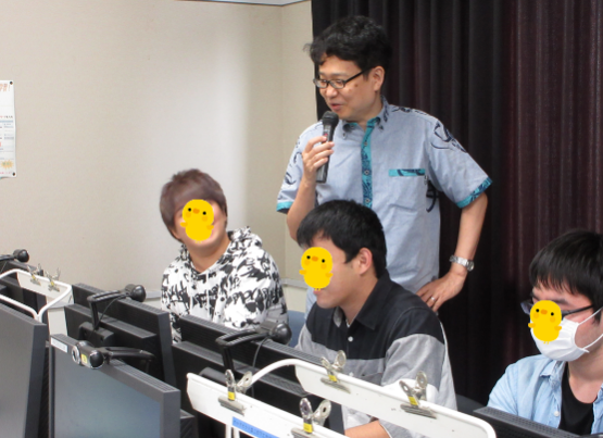「琉球語会話」では、「CALL教室」というパソコン教室を使って、ヘッドフォンを付けて「方言」の聴き取りを行ったり、沖縄の言葉の独特の発音を練習しています。沖縄の言葉独特の文法や、日本語(共通語)との共通点・相違点などの理論も学んでいきます。