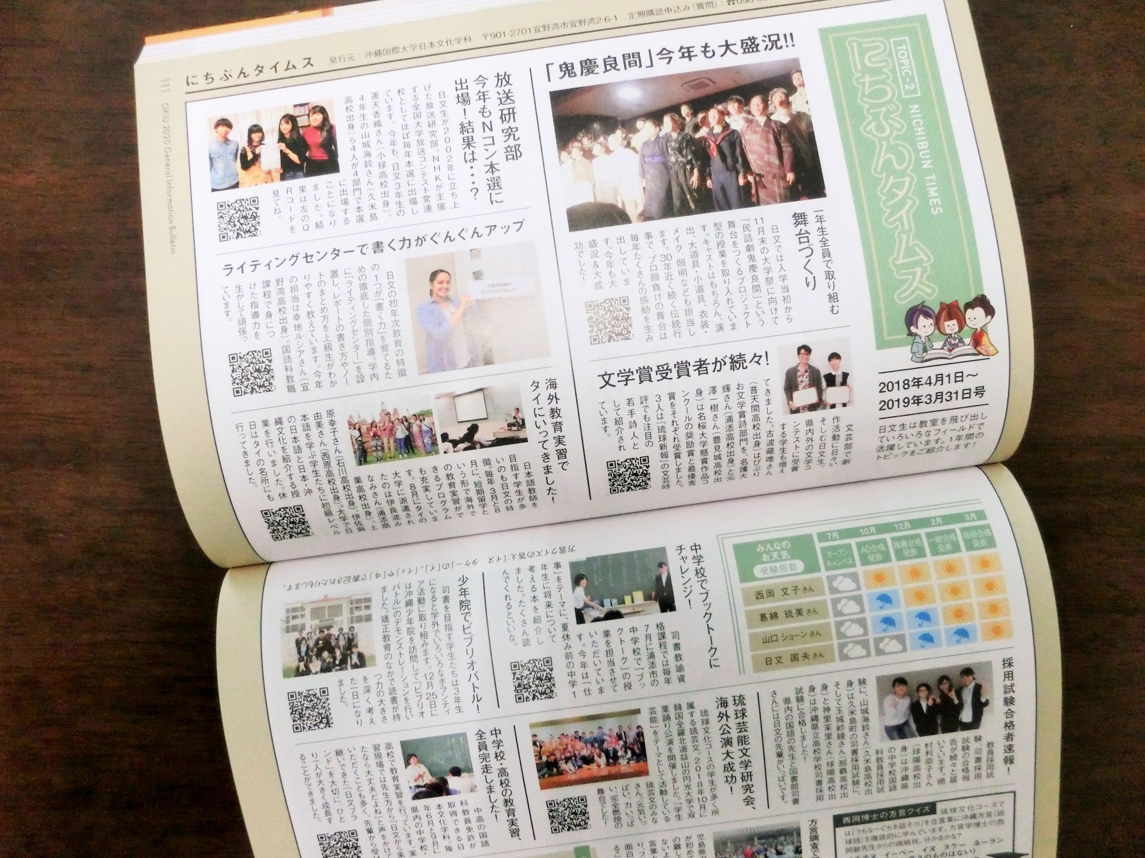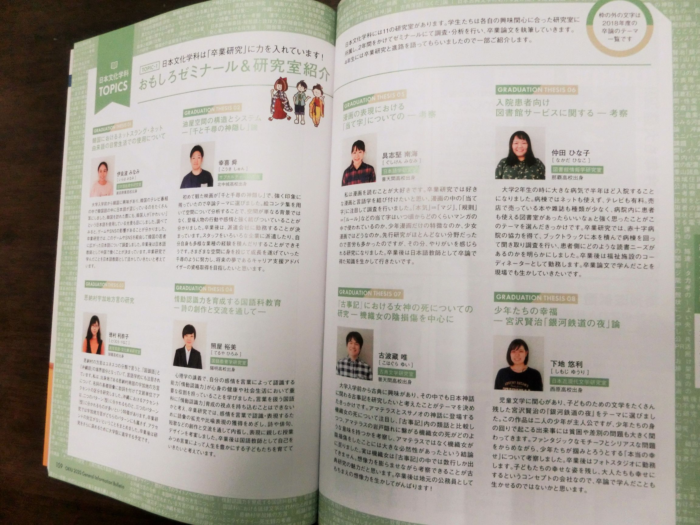 【2020年版大学案内が完成しました! 日本文化学科のページも充実しています】