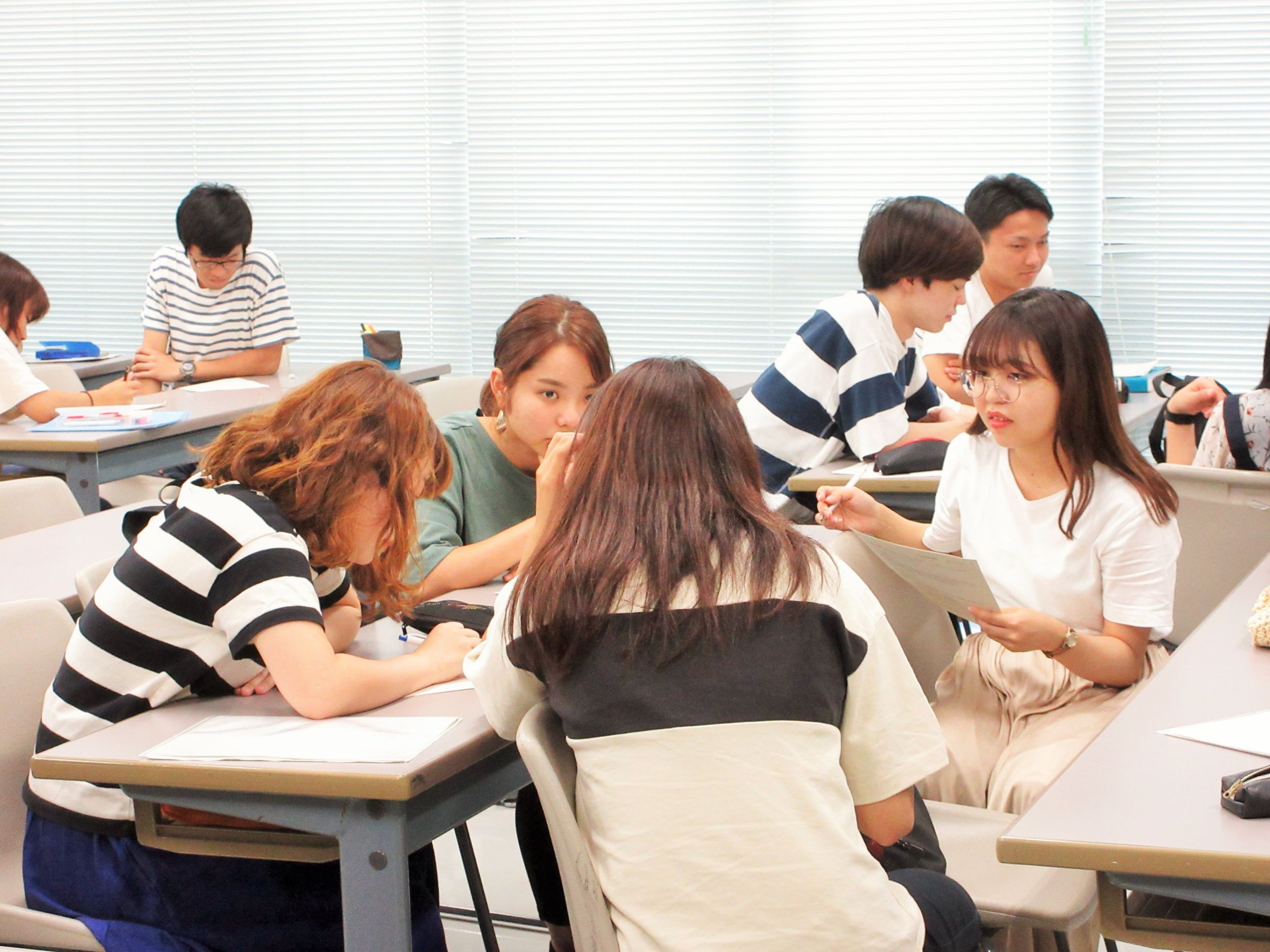 日本語教育副専攻課程の入門科目で、外国人に日本語を教える「日本語教師」という仕事を目指す学生たちが最初に受講する科目です。日本語教育について概要を理解し、主に初級教科書を分析し、学習者が何をどのように学ぶかイメージを持てるようになることをアクティブ・ラーニングも取り入れながら学んでいく授業です。