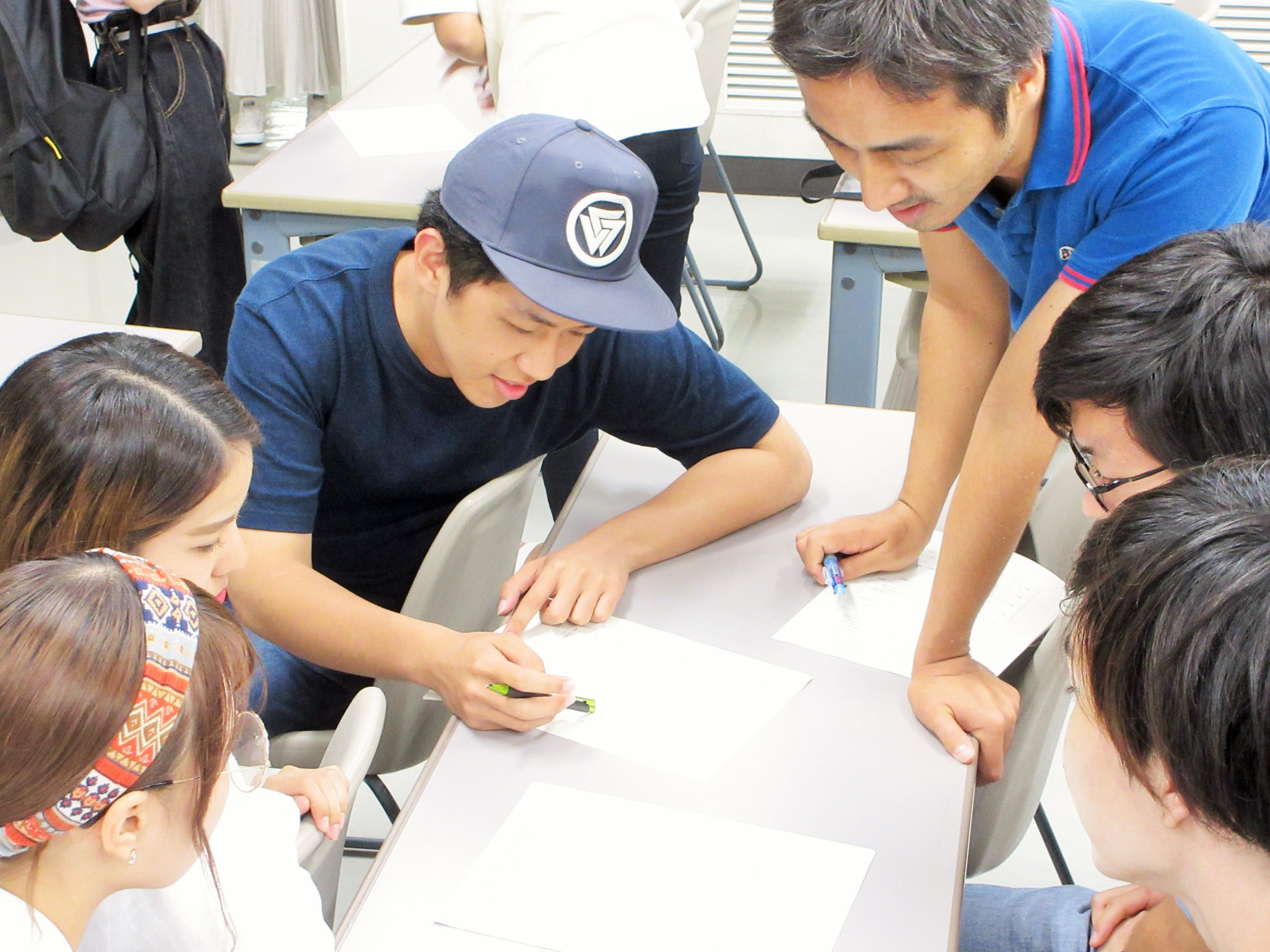 まずはグループワークとして、5グループに分かれ、それぞれに留学生に必要な日本語力について話し合いました。