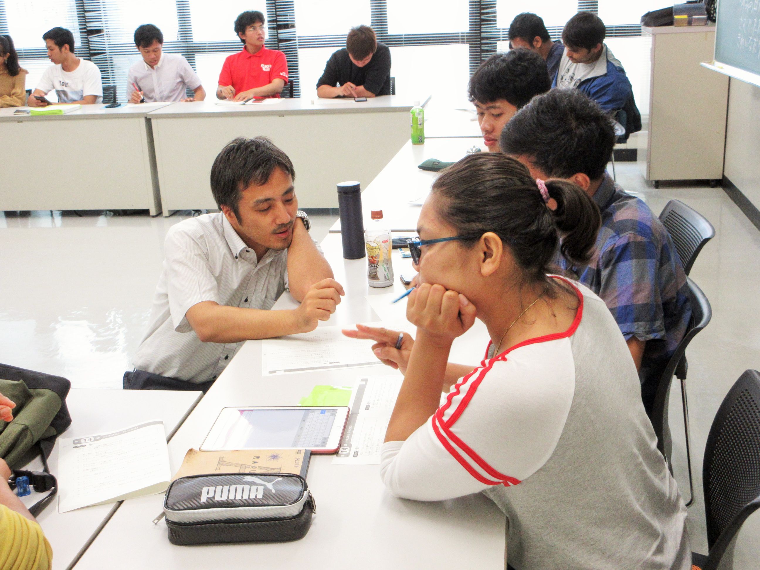 また、学生が問題を各自で解く時間の時も、教室を回り、指導していた奥山先生と、アシスタント学生へ留学生のみなさんが一所懸命に質問を行っていました。