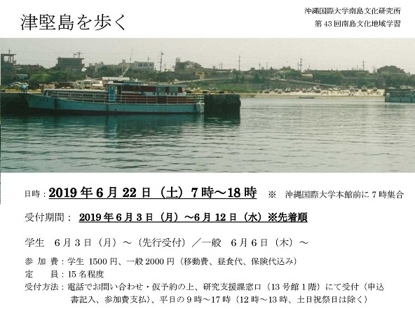 沖縄国際大学に設置されている南島文化研究所が主催する地域学習ツアーが以下の日程で6月22日に開催されます。