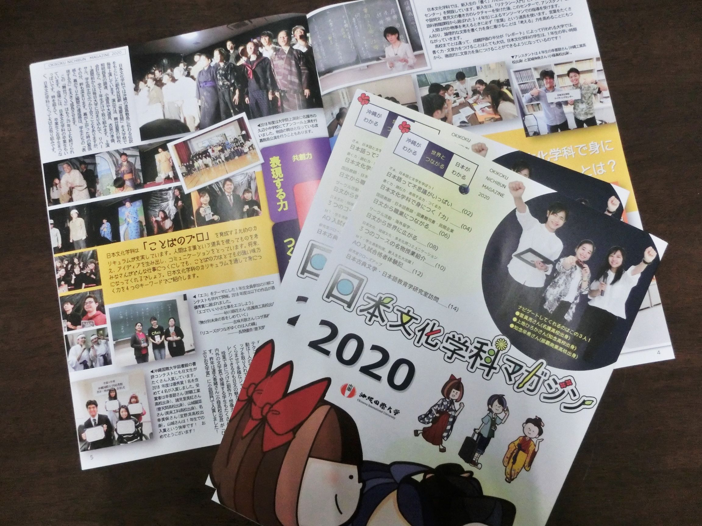 説明会ではできたてほやほやの、学科オリジナルパンフレットも配布します。このパンフは、学科教員と学生たちが手作りで仕上げているもので、日本文化学科の「いま」がたくさんつまっています。