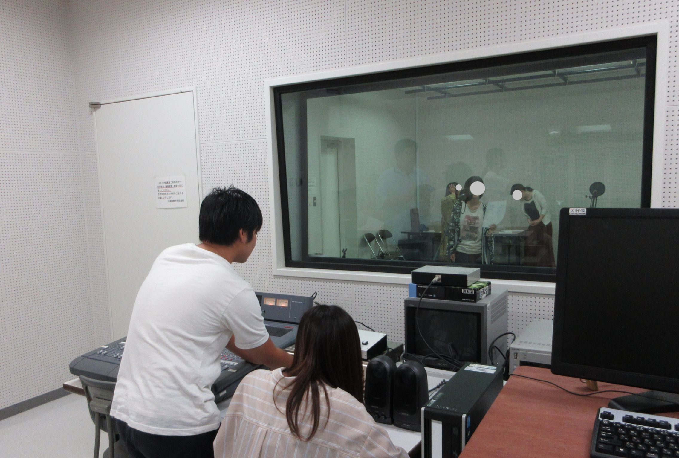 6月からはこの資格の必修科目となっている「児童文化論」という授業で、子ども向けのアニメーションを制作するため、図書館3Fにあるスタジオでのアフレコ録音を行っています。