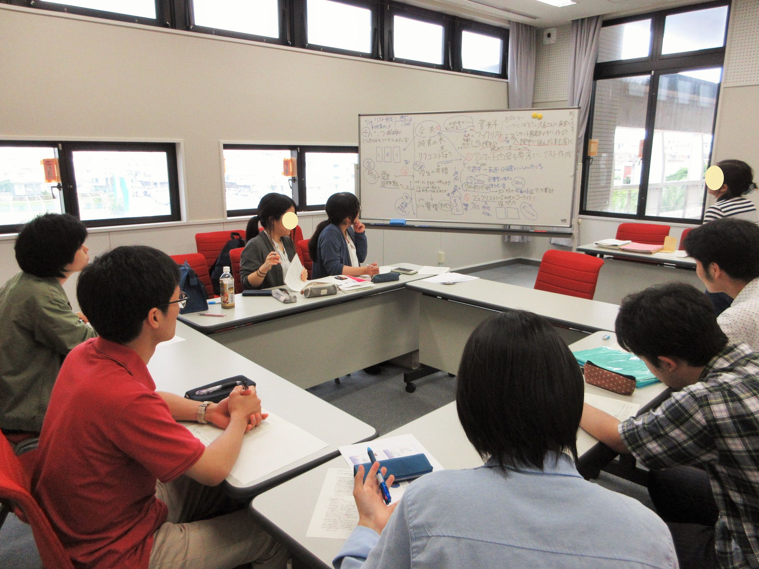 この日は、前回の授業で図書室担当の方からお聞きした、利用者の特長や病院内の図書館という特性をふまえて、図書室の利用を増やすための具体的な方法を検討しました。