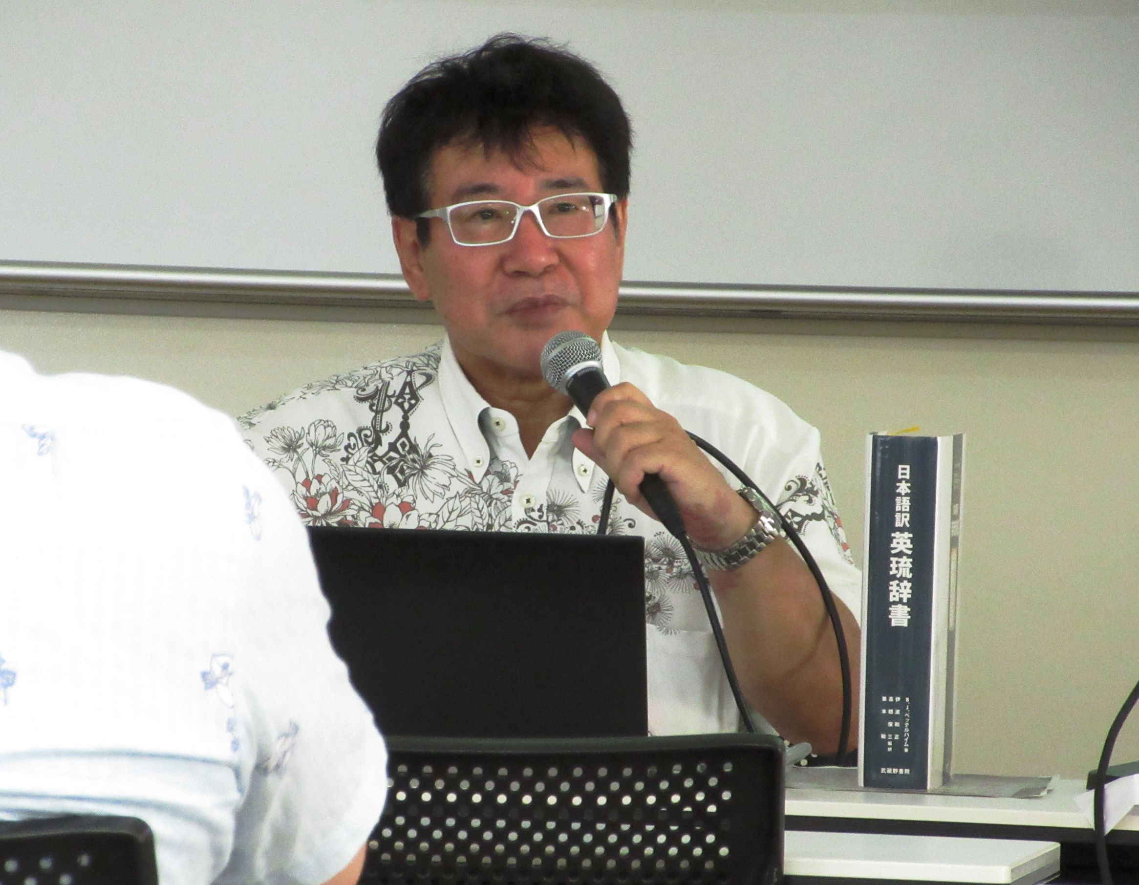 2019年6月29日、沖縄文化協会2019年度公開研究発表会にて、日本文化学科で中国語や比較文化論を担当されている兼本敏先生が、沖縄国際大学名誉教授である伊波和正先生とともに、ベッテルハイムの『琉英辞書』の日本語翻訳版の出版に至る経緯やこれからの課題をテーマとした記念講演に登壇されました。