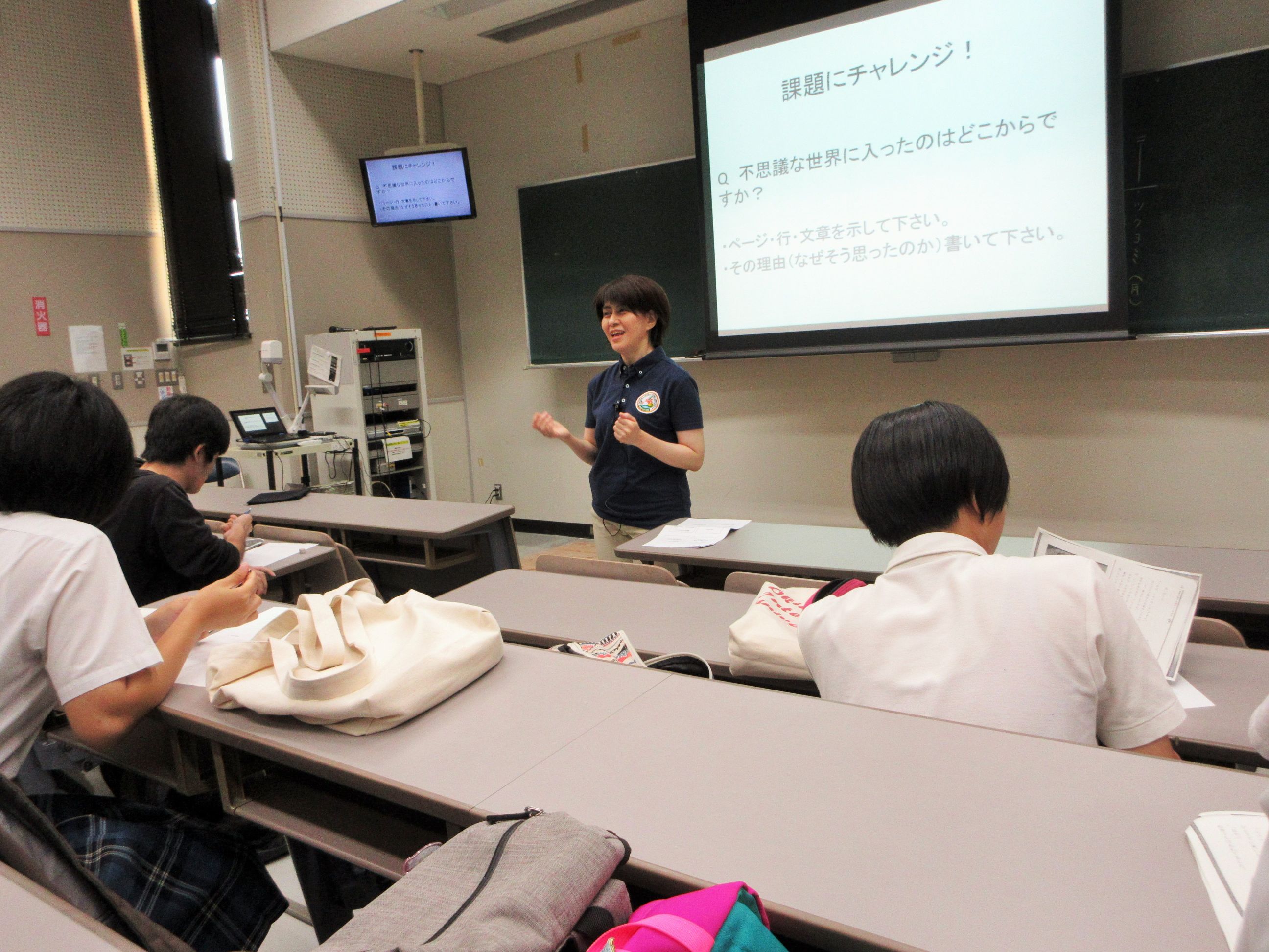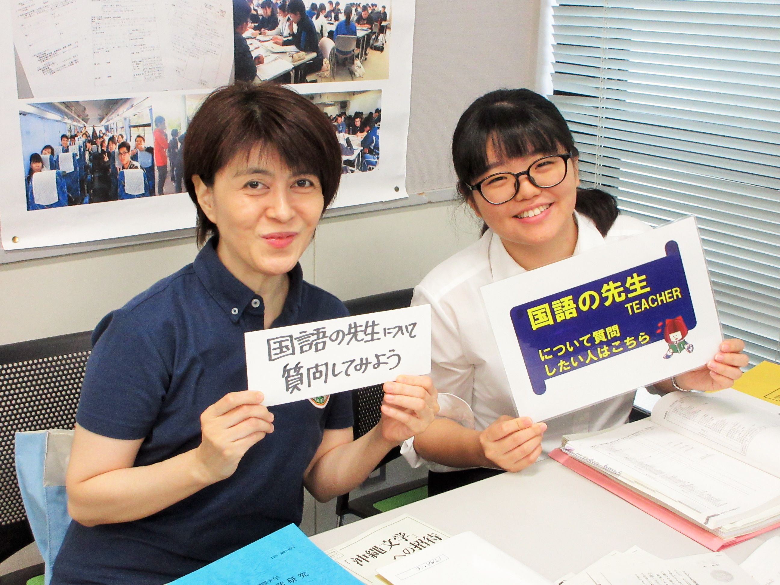 体験講座は豪華2本立てということで、午前伸では「神話」を中心とした古典文学を楽しむ講座、午後は国語の先生になりたい人向けの講座をお届けしました。2つの講座を通して、日本文化学科のカリキュラムの中心にある「文学」の楽しさや奥深さ、私たちの生活との関わりを実感しつつ、日文で学んだことを生かす専門的な職業の1つである国語教師の魅力も十分に伝わったのではないかと思います。