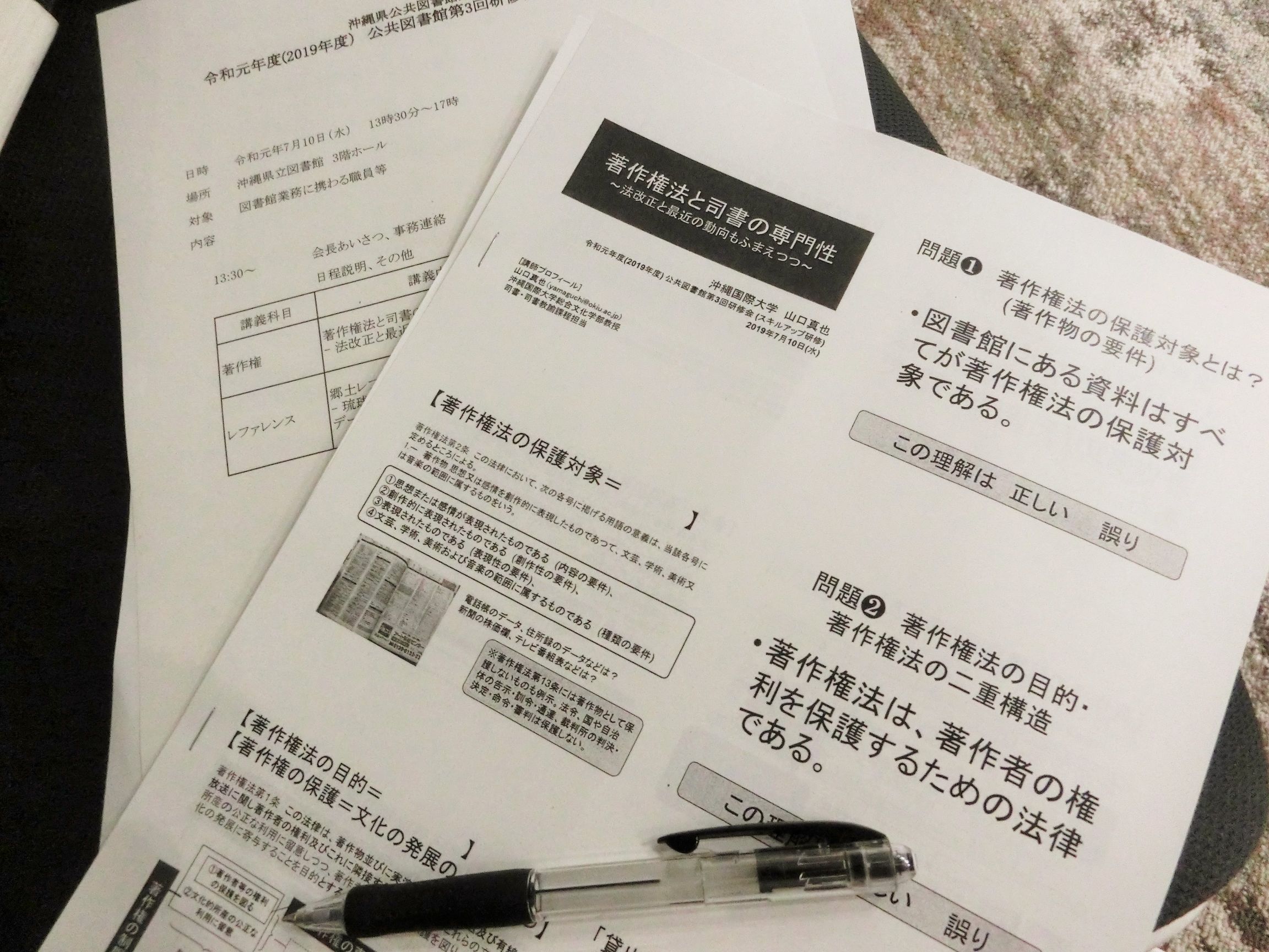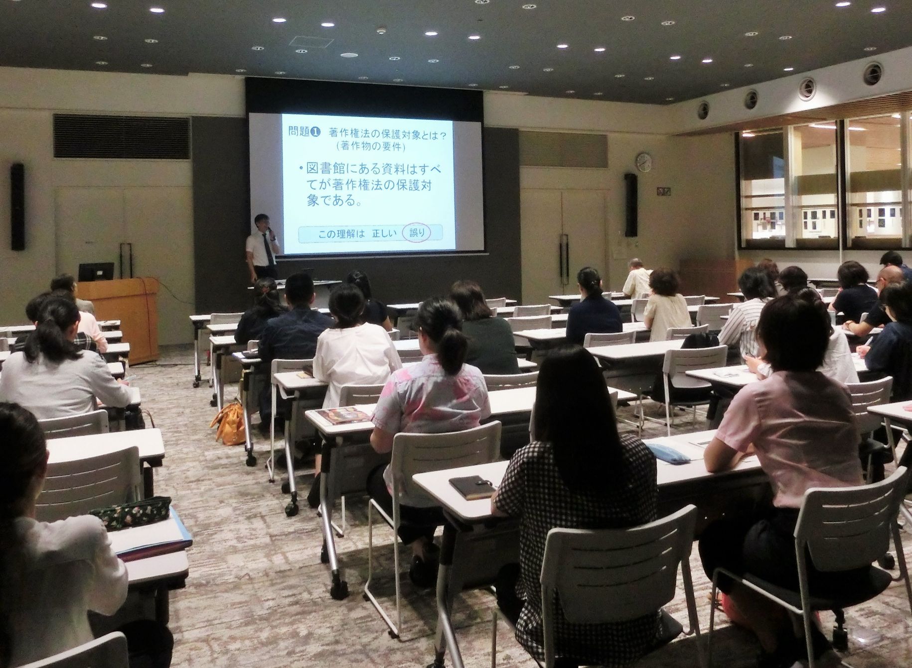 今回の研修は「スキルアップ研修」と位置付けられていて、6月6日に開催された初任者研修で取り上げた著作権法についてさらに詳しい説明がありました。