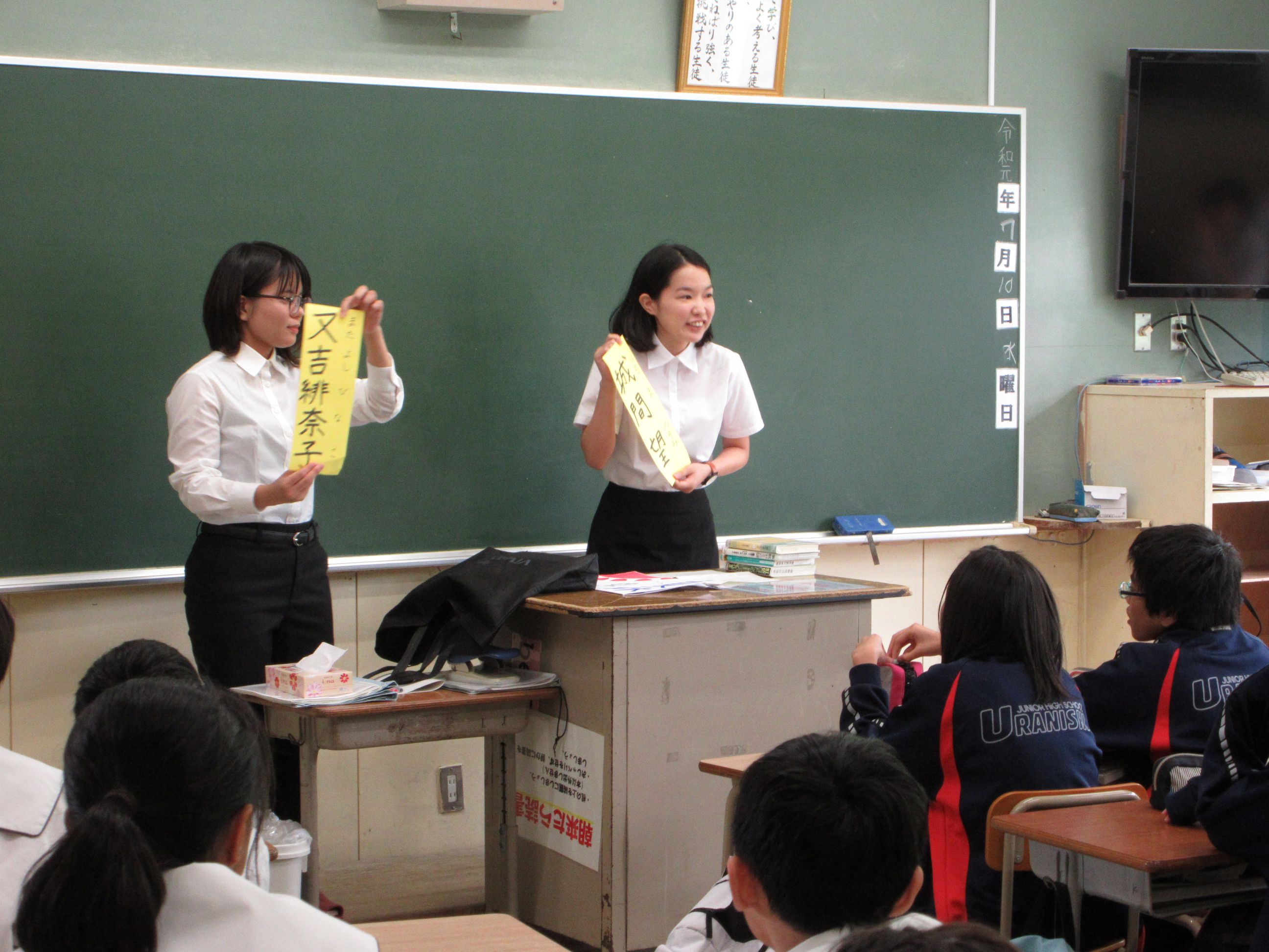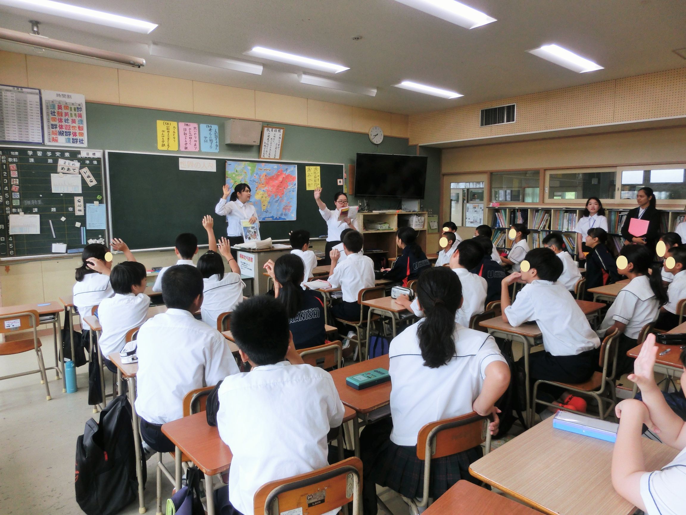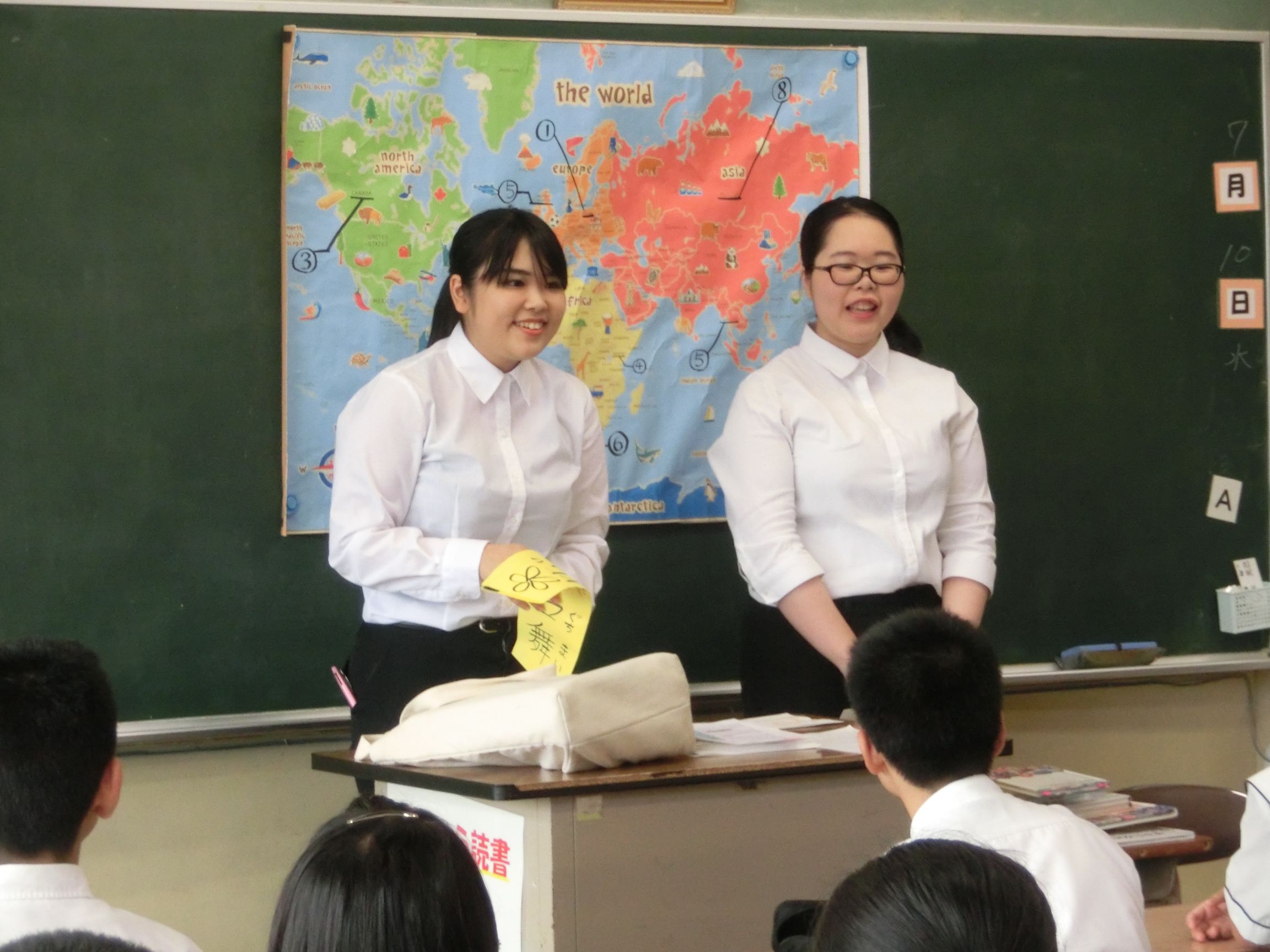 2019年7月10日(水)、浦添市の中学校の先生方のご協力を得て、1年生の国語の授業にお邪魔して、日本文化学科で司書教諭の資格取得を目指す4年生のみなさんが、田名洋子先生ご担当の司書教諭課程の授業「読書と豊かな人間性」の実習活動として、「ブックトーク」を行いました。