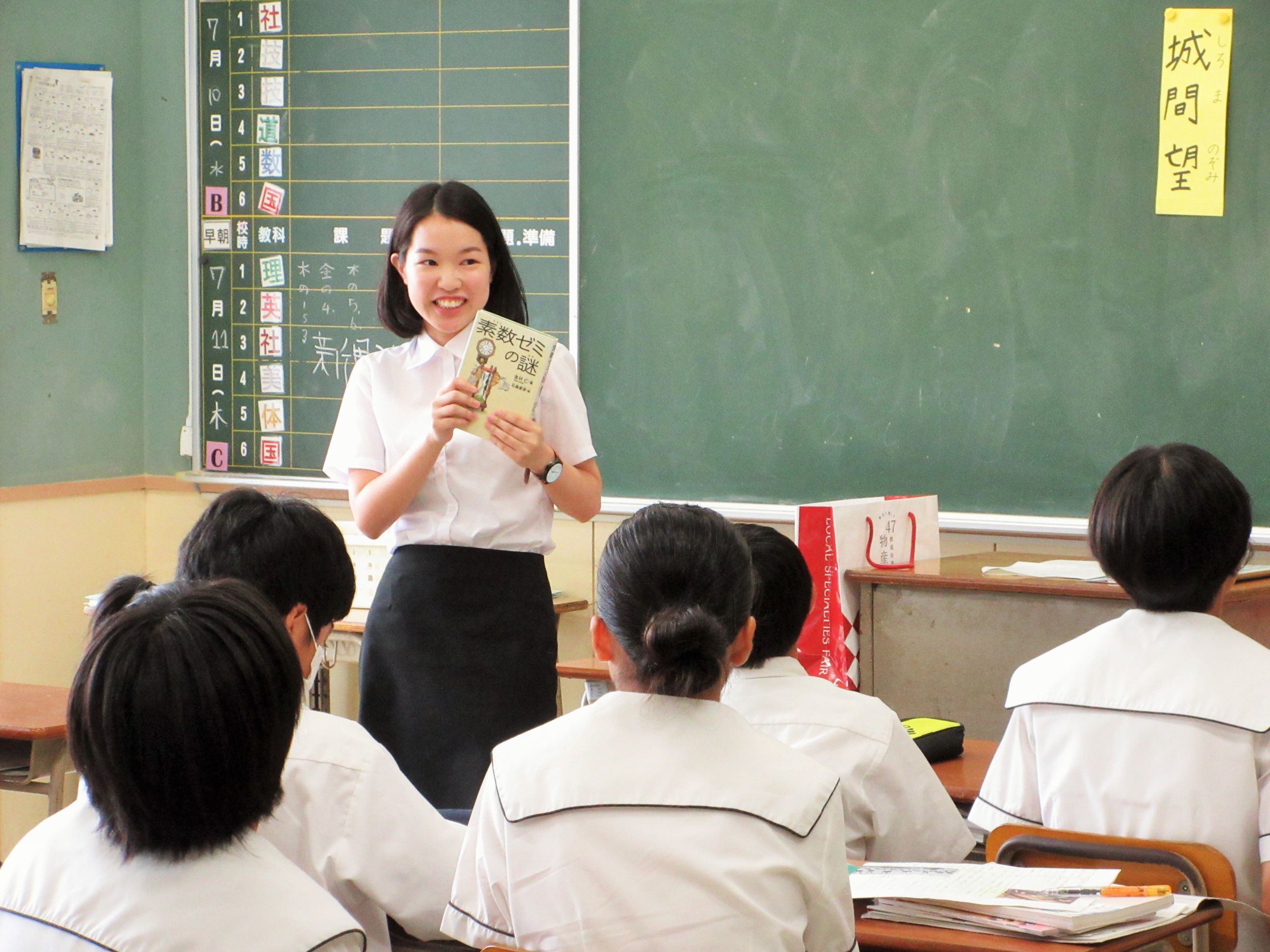 【司書教諭課程受講生が浦添市の中学校で「ブックトーク」を行いました!】