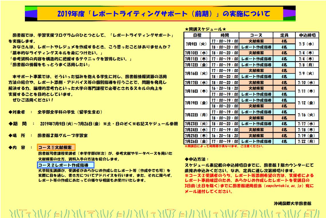 前期のレポートライティングサポートは沖縄国際大学図書館にて7月下旬まで開催しています。まだまだ予約受付中です! 在学生のみなさん、ぜひご利用ください!