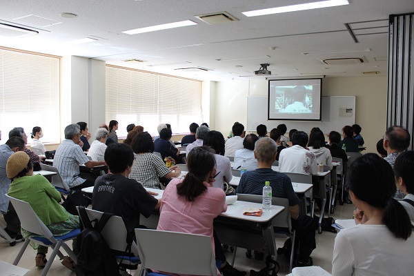 「ウンガミ」とは大宜味村謝名城に伝わる海神祭のことで、報告会ではウンガミの実演もありました。祭りの解説を前田氏が、片本所員は、心理臨床学の立場から、コミュニティの中での神人や海神祭について考察し、発表されました。