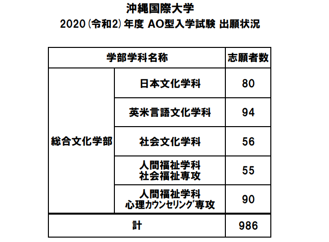 AO入試の出願状況が沖縄国際大学のホームページで掲載されています。今年は昨年度よりも、なんと10名以上もエントリーが増加して、80名のエントリがありました。