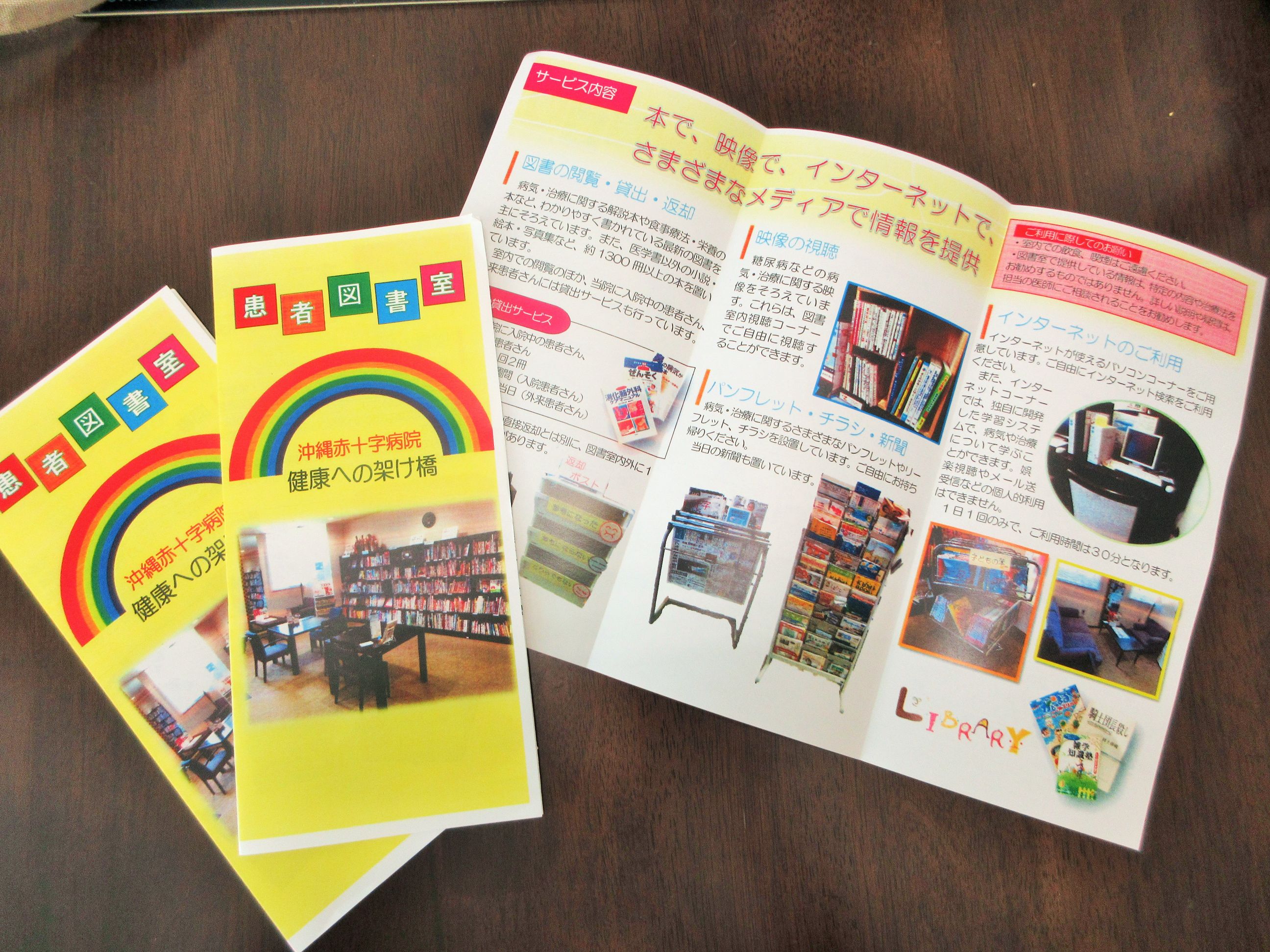 2019年8月13日には、これまでのプロジェクトの総仕上げとして、沖縄赤十字病院を訪問し、集めた本を掲載したブックリストとリニューアルした利用案内パンフレット100部をお届けし、ブックリストに掲載した本を展示するコーナーをつくる作業を行いました。