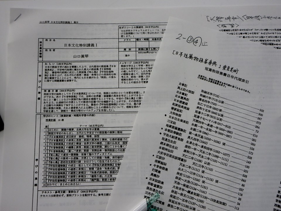 山口先生のご専門は古典文学の1ジャンルである「説話」。初日の授業は、説話というものが身近な形で私たちの生活の営みになっている、というお話からスタートし、学生たちとなぜ古典を学ぶのか、説話を学ぶのか、という意見交換を行いました。