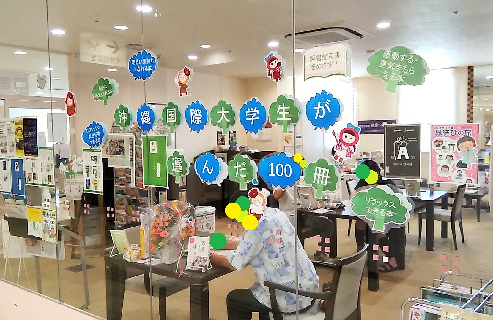 6月中旬から約2か月かけて図書館情報学研究室の4年生の皆さんが取り組んだ、沖縄赤十字病院の患者図書室を活性化するためのプロジェクト。8月中旬に患者さんの気持ちに寄り添うブックリストと展示コーナーの設置が終わって、約1ヶ月が経過しましたが、その後の様子を担当の久高さんに教えていただきましたので、ご紹介します。