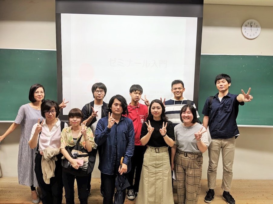 日本文化学科には、2年生の必修科目として「ゼミナール入門」という科目があります。毎回、各先生が研究室での研究内容をさまざまな趣向を凝らしてプレゼンし、2年生のゼミ選択の参考にしてもらっています。