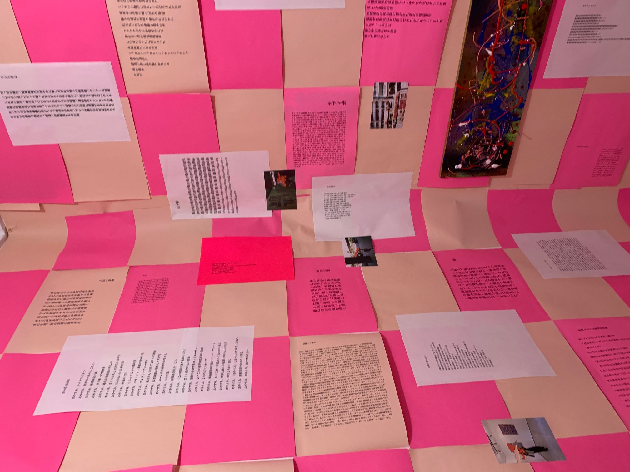 水に沈む言葉、アートに重ねられた言葉、言葉が生まれ、育まれる胎内を思わせるピンク色の空間などなど……。